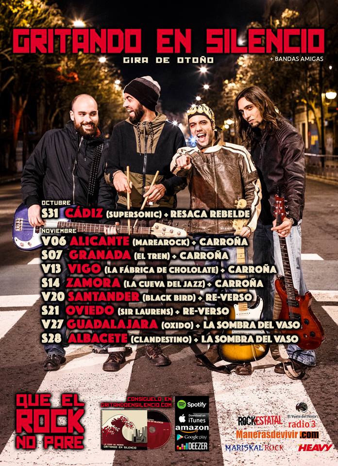 ¡Volvemos a la carga con las últimas novedades! Empezamos con la firma de discos de Saurom, que empieza este viernes 2 de octubre en Cádiz. Rat-Zinger ha publicado las últimas fechas de su gira "Rock´n´Roll para hijos de perra", Gritando en Silencio anuncian una gira para este otoño y en Castellón ya lo tienen todo listo para el Old Skull Fest que se celebrará el 10 de este mes. Un poco más lejos, en marzo concretamente, tenemos la gira de unos Masterplan que publicarán el próximo 6 de octubre el primer "live" de su carrera.