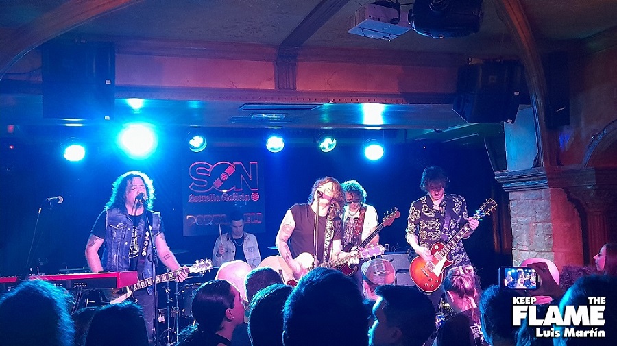 Un poco después de las 21:00 se abrieron las puertas de la sala para que entrara la gente que estaba ya esperando fuera, y me gustó ver que no era poca. La sala mostró una buena entrada, estaba casi llena, y además la gente se presentó pronto para ver también al grupo invitado, algo que no pasa todos los días y que, sinceramente, no entiendo. Media hora más tarde saldrían al escenario los propios Hellsinki, con todos sus miembros vestidos completamente de blanco, con el cover de "Sweet dreams" de Marilyn Manson, un inicio un poco extraño teniendo en cuenta que el resto de su repertorio fueron temas propios y en español. Desde la primera canción, ya se notó desajuste en el sonido, y es que la voz estaba excesivamente alta y en muchos momentos saturada, algo que incomprensiblemente no se arregló en toda la actuación, aunque sí en la de Whisky Caravan.
