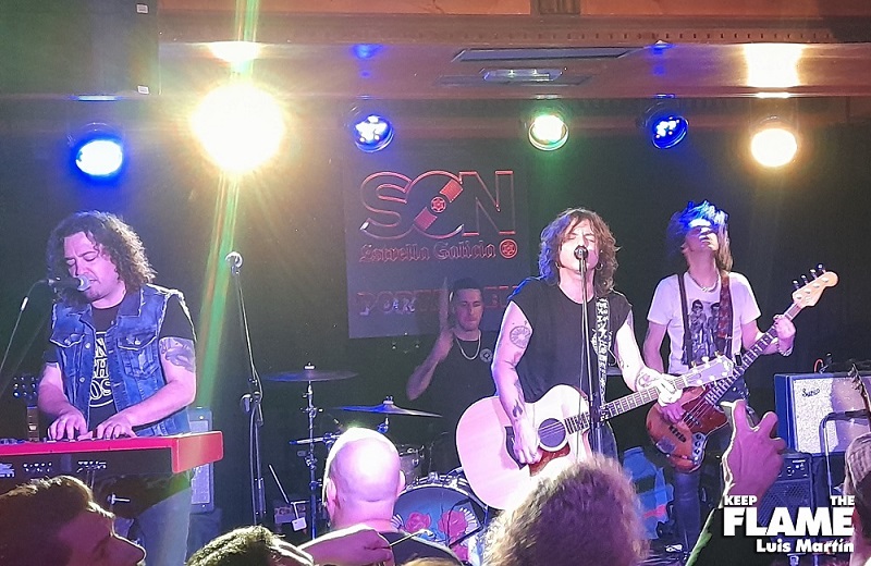 Tras un pequeño descanso apareció Whisky Caravan en las tablas, arrancando directamente, sin intro ni nada que se le parezca, con el temazo "Imaginaciones" y "Escombros", aún con el público algo frío, aunque no duraría mucho, pues la siguiente, "Días de niebla", fue coreadísima por un público que desde entonces no paró de cantar. Todos excepto un grupo de individuos, que ocupaban un espacio muy adelantado en la sala y que pagaron la entrada de un concierto para no verlo, pues estuvieron en círculo, tonteando entre ellos, muchos de espaldas al escenario y totalmente ajenos a que había cinco músicos tocando en directo. Por supuesto, ni un aplauso ni nada parecido. Lamentable, me gustaría saber a qué fueron.