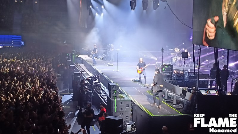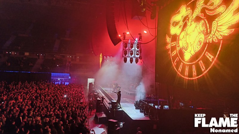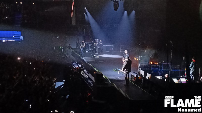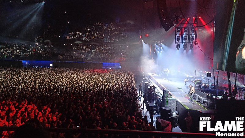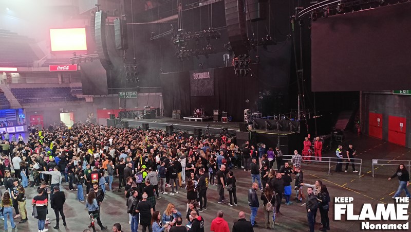 A las 19:00 abrían puertas y aunque yo no estaba tan temprano, a la postre, sí sería de los primeros, ya que a las 19:40 me sentaba en el asiento que me habían reservado en grada, con visibilidad más bien reducida. Seamos claros (y concisos) diciendo que un concierto de rock no se puede ver sentado. Aunque, como veréis, después lo agradecería.