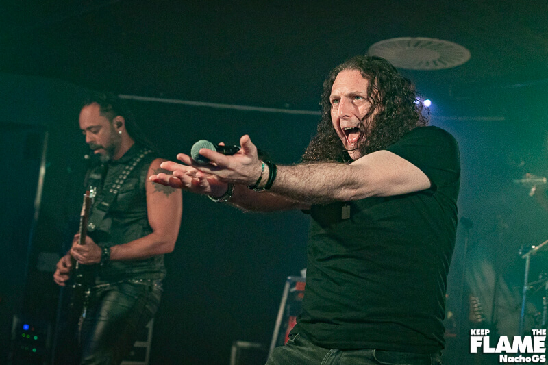 Lo del bueno de Fabio merece un aparte. Porque el pisano fue todo lo que debe ser un vocalista de metal. Siempre le pesará la mofa de todas las bandas en las que ha estado, pero lo cierto es que el pasado viernes vimos sobre el escenario de la sala Acapulco a un frontman de matrícula de honor. No falló ni una nota, supo jugar con el público en temas como "Ride into the Storm" (qué cañonazo de tema por cierto) o "Dead man on Display", y conectó con todos nosotros haciendo alusión directa a la llingua asturiana.