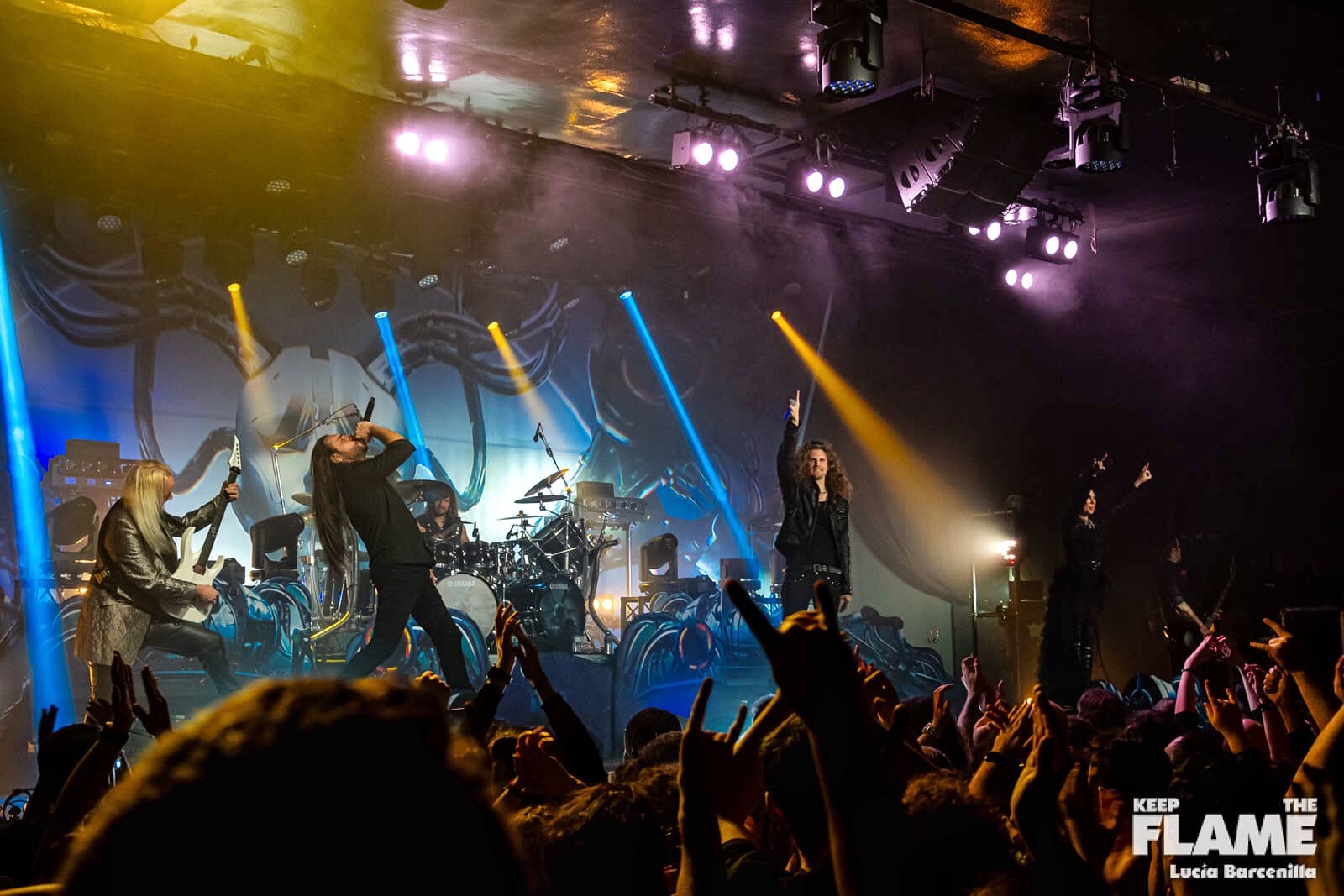 Es cierto que casi todas las canciones de Amaranthe son muy similares, cortitas y al pie. Lo que tiene que duren poco más de tres minutos es que caben muchas en un show de hora y diez, y si no te gusta una, pues se acaba pronto. Eso me pasó con "Boom!1", y "Re-vision", que no me aportan nada. Sí me gustó "Maximize", "Crystalline", que es un baladón, "Strong", con Nils haciendo la parte que grabó Noora Louhimo y el clásico "The Nexus". Salvo "Damnation flame", diría que las canciones del nuevo álbum pasaron algo desapercibidas, a parte de las comentadas optaron por "Interference" y la propia "The catalyst". El único momento en el que hubo un teclado en el escenario fue para el gran clásico "Amaranthine", en el que Olof al piano y Elize harían la primera parte del tema, destrozándola, dicho sea de paso, tocando muy despacio y cantando como a tirones.