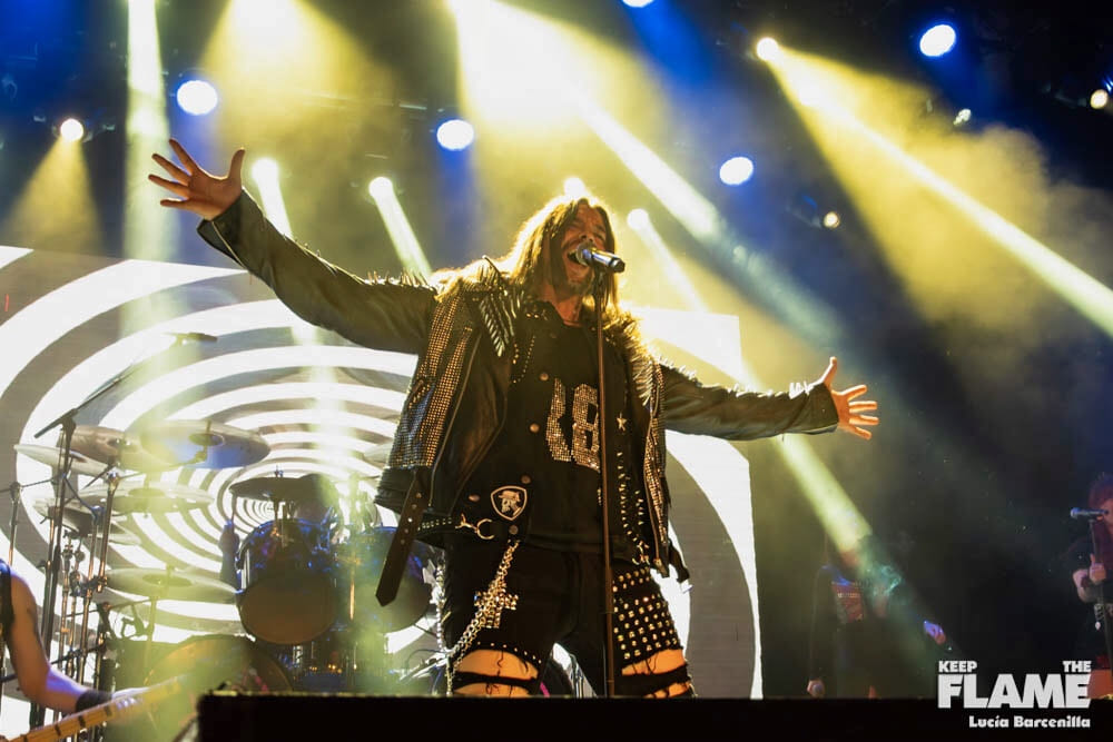 Seguía con "El Metalverso" y "El Paseo de los Tristes" el concierto sonaba muy metalero, y es que llevar tres guitarras se tenía que notar, pero con un sonido muy bajo en las voces de Rafa. Sonido que aunque posteriormente mejoró algo, en ningún momento fue óptimo. Y hablando de Rafa, no había tenido oportunidad de verle aún (mi último concierto de Mägo de Oz es de la gira de "Illusia") pero me encantó su actitud, con mucha fuerza en cada uno de sus gestos, incluso recordando en algunos momentos su mejor etapa como banda.