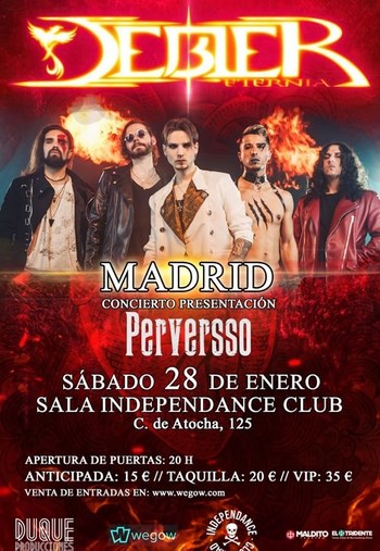 Os recordamos que este sábado 28 de enero tenéis una cita con Débler Eternia en Madrid. La Sala Independance Club será testigo a partir de las 20:00h de la gira presentación de su último disco "Perversso" publicado hace unos meses por Maldito Records.