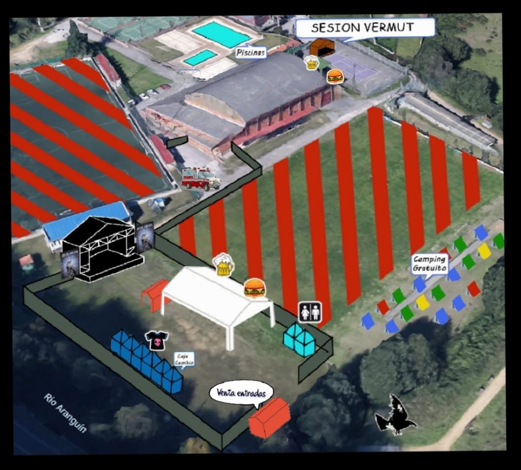 Una de las novedades del festival es que pasa a ser de pago, las entradas cuestan doce euros y están disponibles en wegow. La acampada será gratuita en las magníficas instalaciones deportivas de Agones, que cuentan con piscina por 2,50€ el día y bar. En el festival también habrá zona de comida y bebida (ojo a los precios) y todo lo necesario para disfrutar de la jornada como podéis ver en el plano.