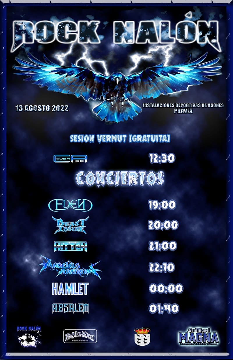 Eden: banda emblemática de la escena asturiana que a finales de año entrarán a grabar su sexto álbum. En Pravia debutará el nuevo batería Fernando Argüelles y quizás haya alguna sorpresa en forma de adelanto del nuevo trabajo. Alicientes más que de sobra para no perderse su participación en el Rock Nalón.