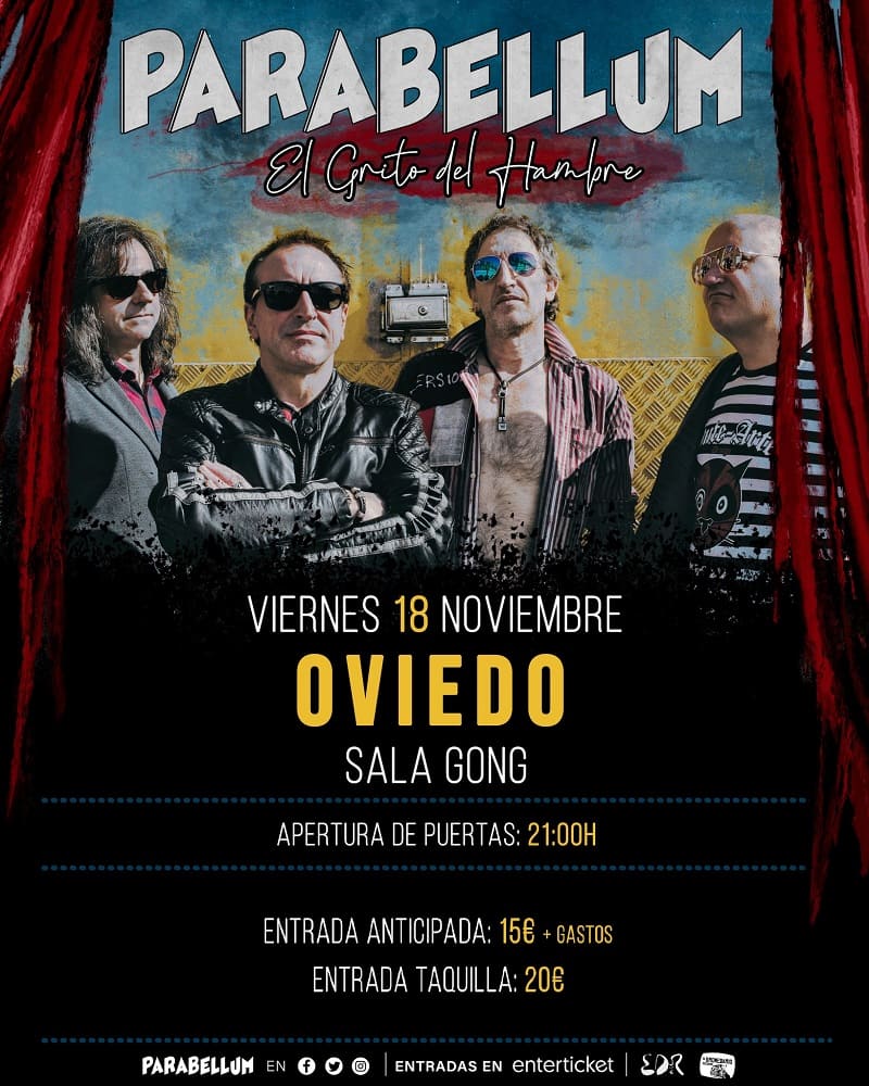 Os recordamos que los míticos Parabellum llegarán con su gira "El Grito del Hambre" a Oviedo este viernes 18 de noviembre. La cita con los de Barakaldo será en la sala Gong a partir de las 21:00h.