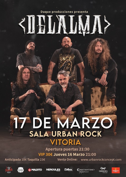Delalma ofrecerán su primer concierto el próximo diecisiete de marzo en la Sala Urban Rock Concept de Vitoria. La apertura de puertas será a las 21:30h y las entradas costarán 23€ en taquilla y 18€ en anticipada. También habrá la posibilidad de obtener un acceso VIP por 30€ que te permitirá el día de antes del concierto, el jueves 16 de marzo a las 21h, asistir a la prueba de sonido y un Meet & Greet con la banda. Entradas online en urbanrockconcept.