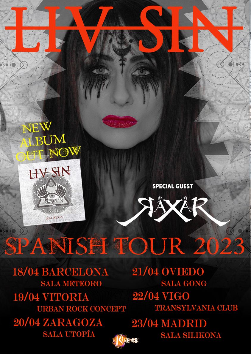 Liv Sin estará en España el próximo mes de abril presentando su último trabajo "Kaliyuga", los catalanes Raxar será la banda invitada en las seis fechas programadas.