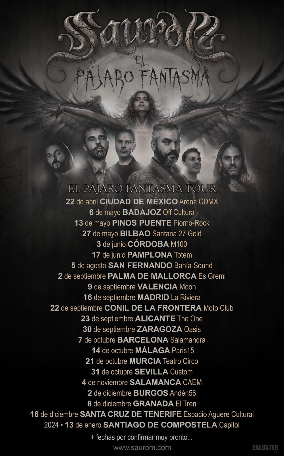 Que agradable noticia es siempre cualquiera en la que se anuncien fechas de conciertos; así pues, el grupo Saurom ha anunciado "El Pájaro Fantasma Tour" que pasará por numerosas ciudades tras su concierto con grabación en vivo en la Arena de Ciudad de México.