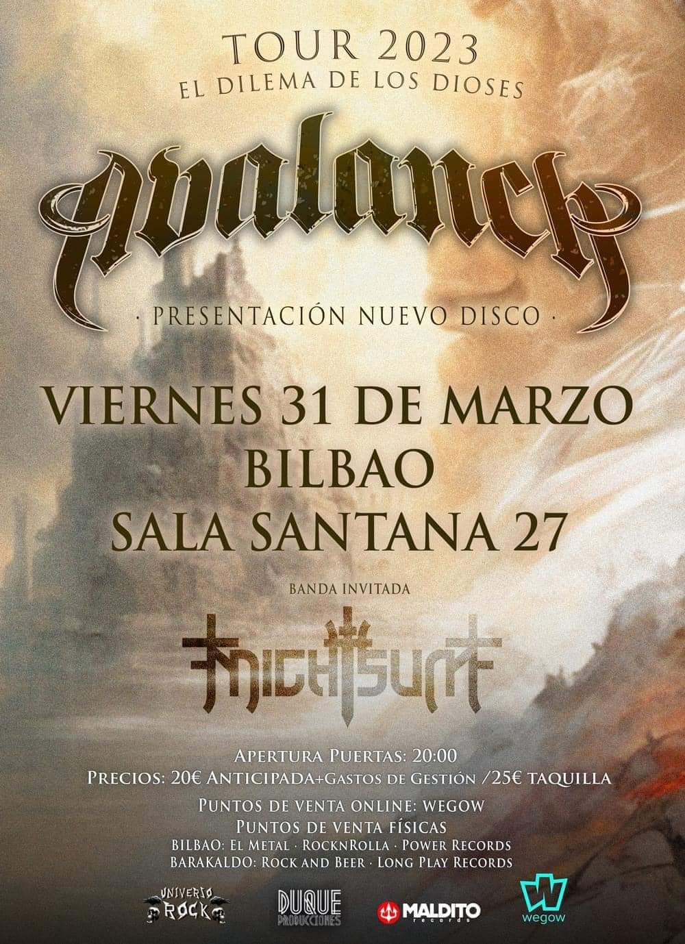 Este viernes arrancará en Bilbao la nueva gira de Avalanch en la que presentarán su nuevo trabajo "El Dilema de los Dioses" y también a la nueva formación compuesta por: Mike Terrana a la batería, Manuel Ramil a los teclados, Nando Campos al bajo, José Pardial a la voz y por supuesto Alberto Rionda a la guitarra.
