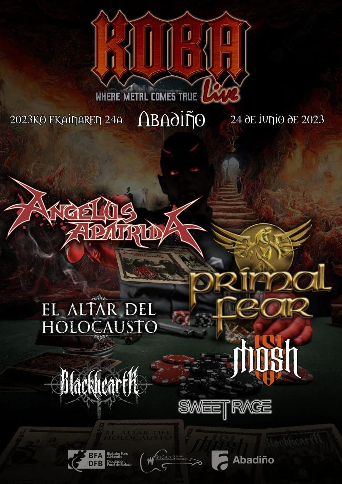 Este sábado tendrá lugar el festival Koba Live Abadiño, que se celebrará la localidad de Abadiño (Vizcaya). Angelus Apatrida y los alemanes Primal Fear encabezarán esta magnífica segunda edición. El Koba Live es un festival de carácter gratuito organizado por el Ayto de Abadiño y la asociación cultural SUGAAR Musika Elkartea, podrás encontrar mas información en la web del festival.