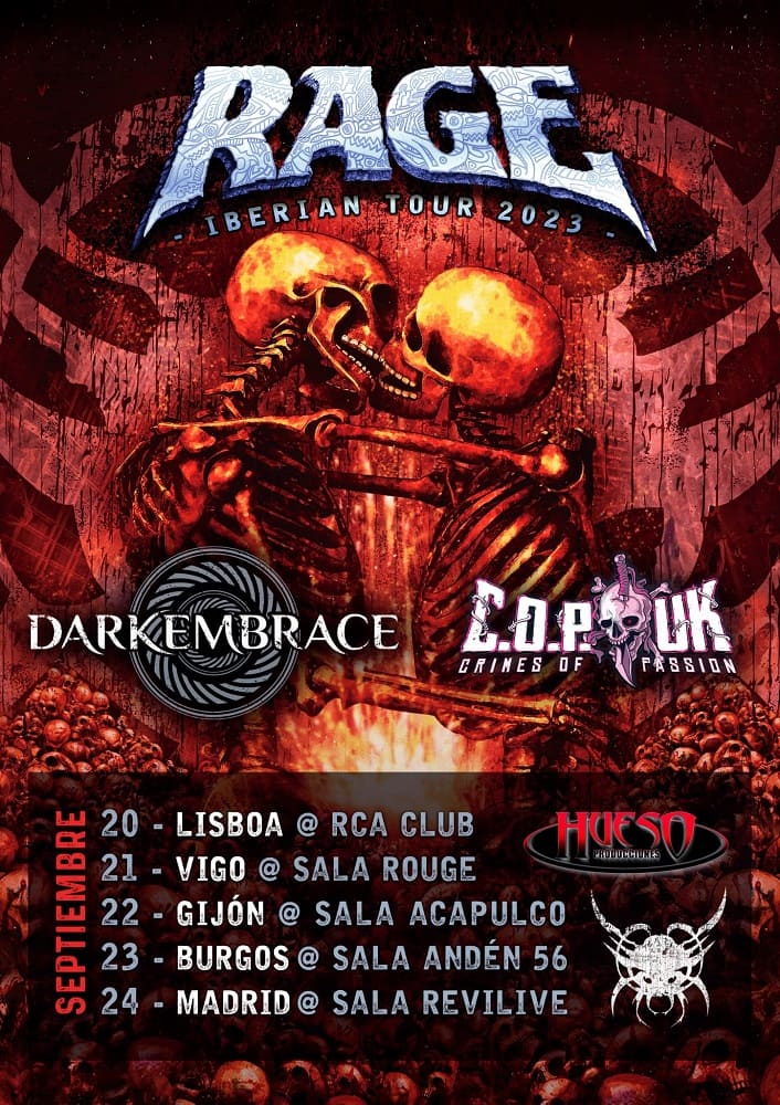 Para esta ocasión, con unos invitados muy especiales, como son los gallegos Dark Embrace, que tras publicar su tercer disco "Dark Heavy Metal" el mes pasado, y estar recibiendo grandísimos elógios por parte de la prensa especializada, junto a grandes críticas por los "metalheads" de todo el planeta. Serán los acompañantes principales de Rage y presentará su aclamado nuevo disco por cinco ciudades ibéricas.