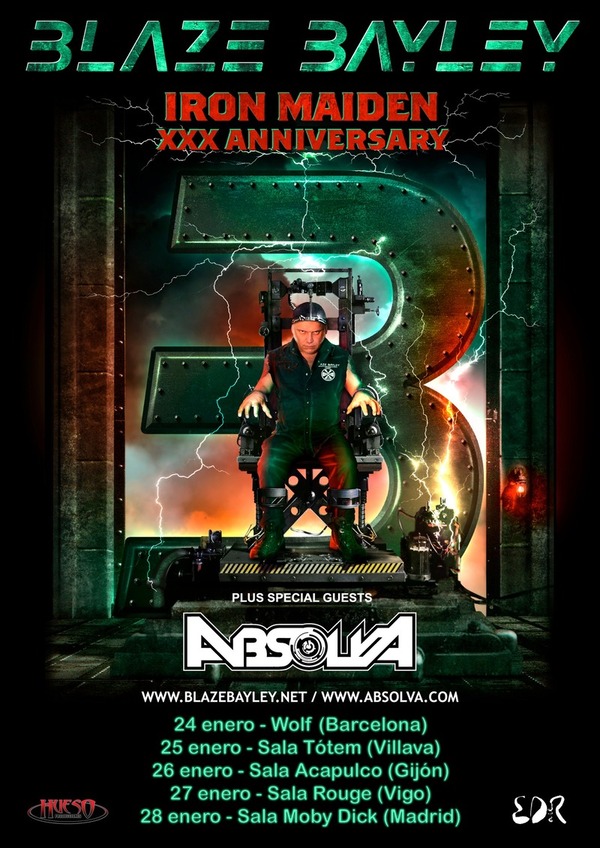 El vocalista Blaze Bayley regresará a España con una gira especial para celebrar el treinta aniversario de su paso por Iron Maiden en la que repasará los discos "The X Factor" y "Virtual XI". Serán cinco fechas en nuestro país con parada en Asturias el viernes veintiséis de enero en la Sala Acapulco de Gijón. Blaze estará acompañado por la banda británica Absolva que presentarán su último trabajo "Fire In The Sky".