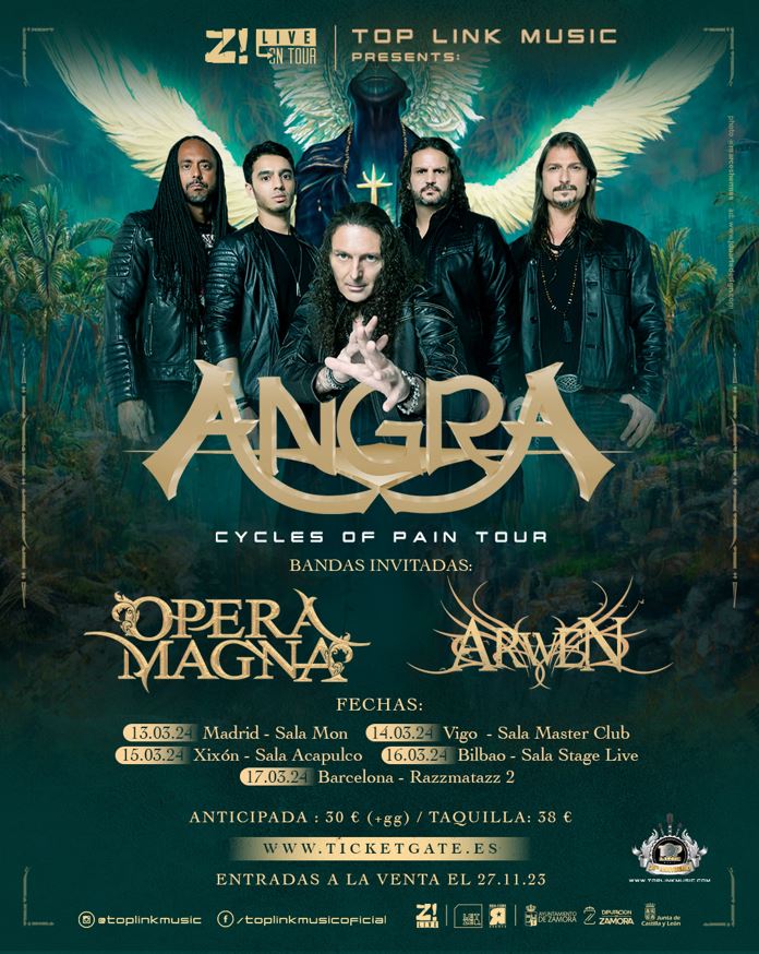Apenas una semana nos separa de la llegada a nuestro país de la esperada gira de Angra de la mano de Z! Live on Tour. Los brasileños presentarán su estupendo último disco "Cycles of Pain" acompañados por dos tremendas bandas nacionales como son Opera Magna y Arwen.