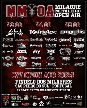 El festival portugués Milagre Metaleiro ha cerrado el cartel de su próxima edición que se celebrará del veintitrés al veinticinco de agosto en Pindelo Dos Milagres (Portugal).Treinta y tres bandas de diferentes estilos encabezadas por Sodom, Kamelot y Amorphis desfilarán por Pindelo durante los tres jornadas.
