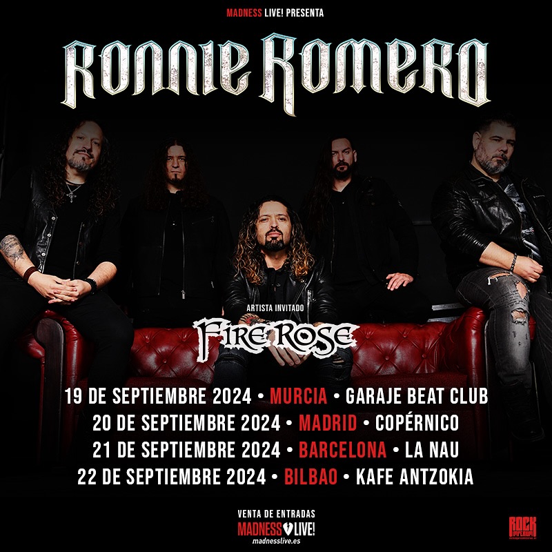 Ronnie Romero presentará su último trabajo de estudio, el fantástico "Too Many Lies, Too Many Masters", en los escenarios españoles el próximo mes de septiembre, en un repaso a sus nuevas canciones que, a buen seguro, contará con guiños a su dilatáda y polifacética trayectoria. Contará además con los suizos Fire Rose, que presentarán los temas de su último disco "Blood On Your Hands".